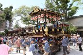 舞台の名称が文書に現れる最も古い記録は元禄五年(1692)とされます。三百年以上にわたり舞台は天神まつりに曳かれてきました。もちろん当時の舞台は残っていません。どんな姿をしていたのでしょうか。現在の舞台は代を重ね、町ごとに競い張り合って十六台の舞台が綺羅を競うこととなりました。