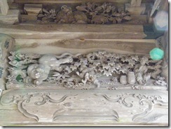 唐破風正面の立派な拝殿は、唐獅子や龍など見事な彫刻で飾られています。社寺彫刻を得意とした山口権之正の作に間違いなさそうです。虹梁部のうさぎなどは跳ね回ることが楽しくて仕方がないといった風情で、こういう彫り物というのは彫刻自体が好きで仕方なかった人の仕事なのだろうと感じさせます。建造年次はまだ調査中です。
