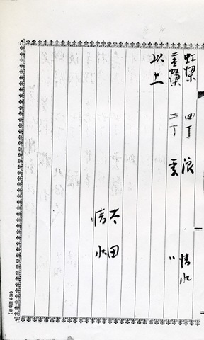 そんな中、マルセ薬店の宮沢さんから上記の仕様書を見せてもらいました。昭和7年ごろのものと思われますが、舞台の新築にあたり、どこにどのような彫刻を施すのかを記した仕様書です。末尾に「太田・清水」と署名があり、南海と湧水による請書といってもよいのかもしれません。原本は高美書店にあるそうです。
