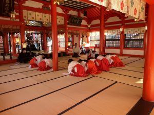 年末年始にご奉仕する臨時巫女への研修会を開催しました。